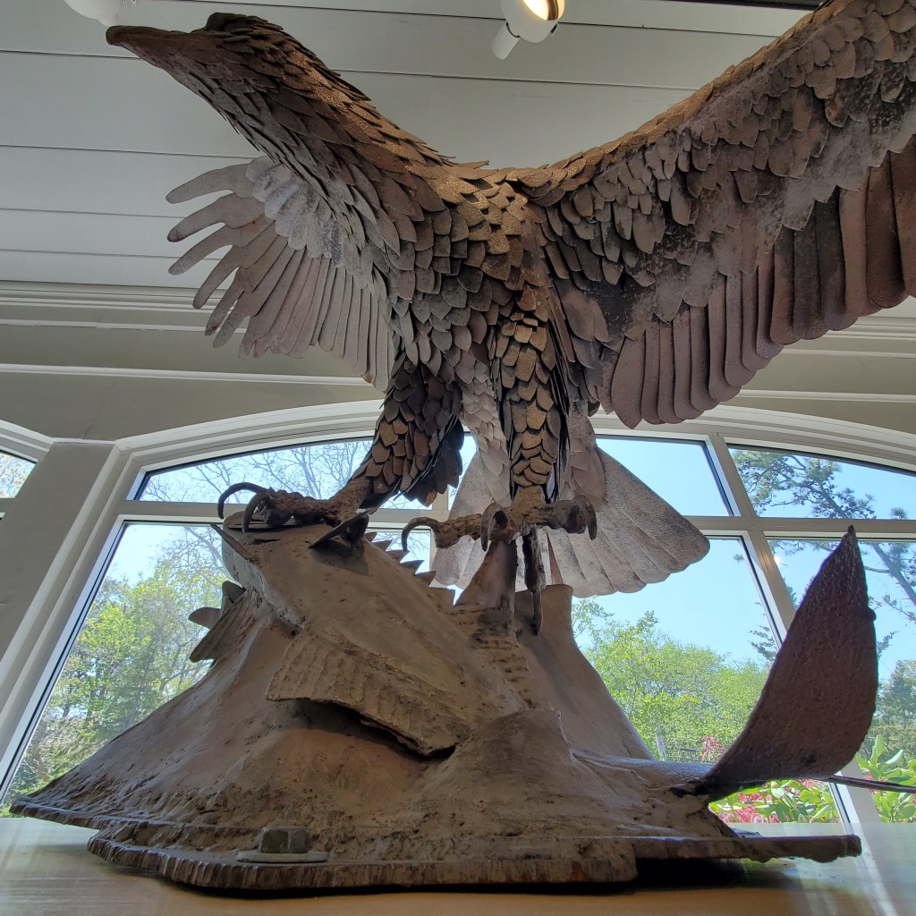 Looking out on Cape Cod Bay from the top of the dune walkway.If I came here often, Howes Beach would be my beach of choice.A deliberate choice I made earlier this year within my theme of “rich” is to visit art galleries and museums wherever I travel. This museum exudes beauty, particularly with their sculptures.Guess what this is made of? Steel! Blows my mind!Had to check out this tree that’s puzzled me looking through the woods out my slider. No idea what’s the story, but there are some life applications, to be sure. Here’s a different view:Imagine the story one of the museum art exhibitors could tell with this wood!Speaking of a story, this view caught my eye this afternoon. Looks like a Marvel Hero pierced this tree with another tree’s limb.